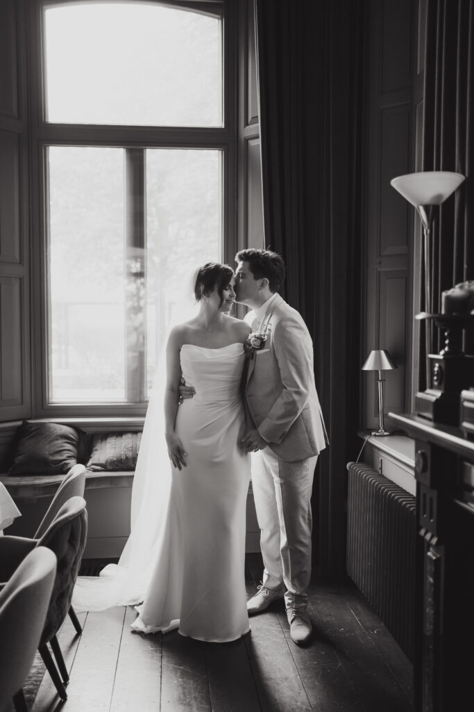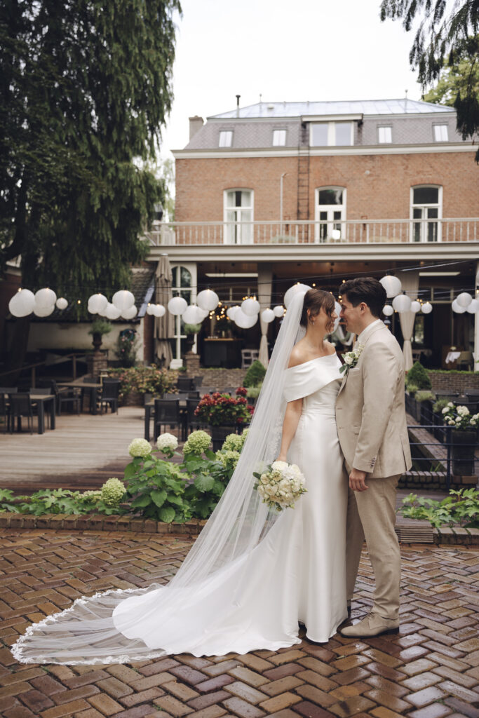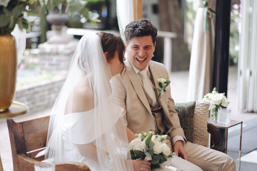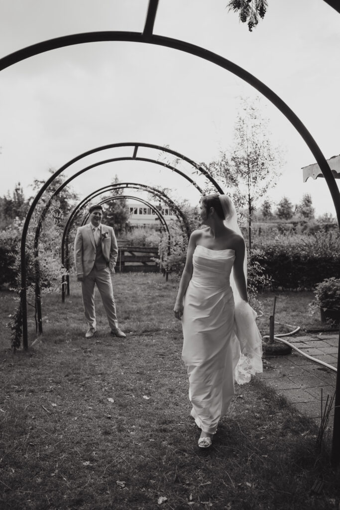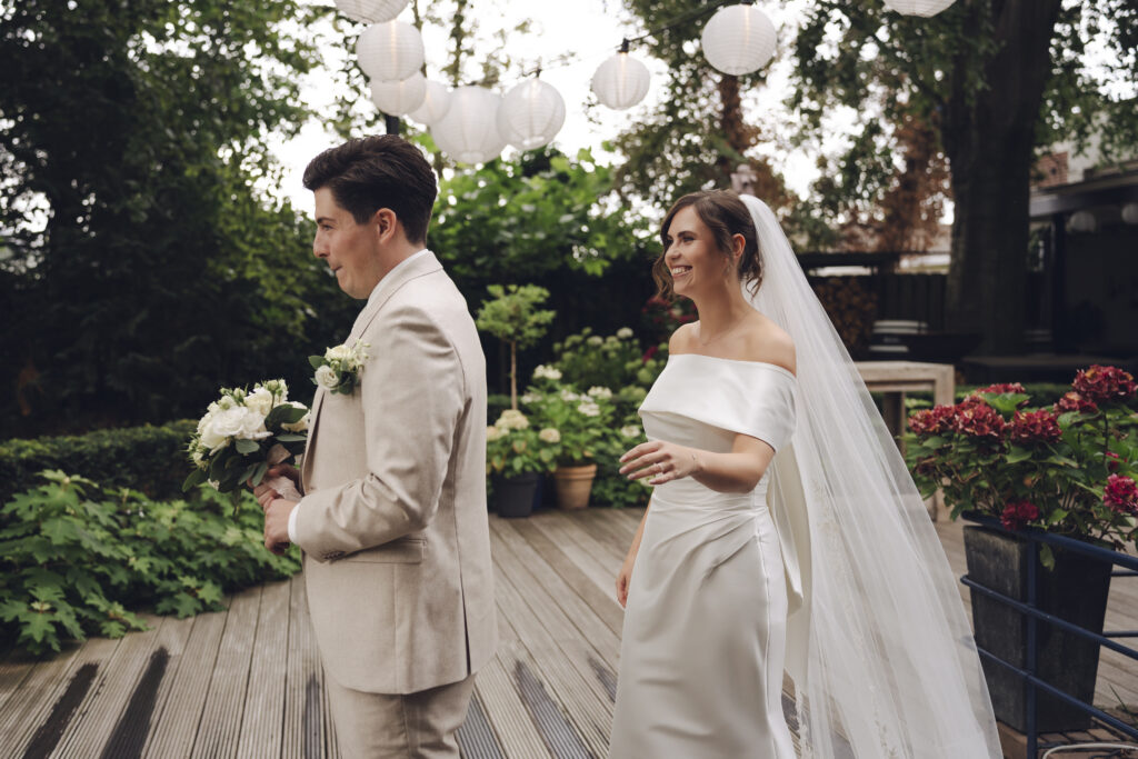 En daarnaast was het ook nog eens een bruiloft met zo veel liefde en een grote glimlach. Dit bruidspaar liet zien dat het weer echt geen rol speelt, als je maar van elkaar houdt. Tijdens de First Look keken zij elkaar aan en begon het ineens super hard te regenen. Lachend rende we naar binnen, dronken we een kopje thee en gingen daarna weer naar buiten om foto’s te maken. Toen was het alweer droog!