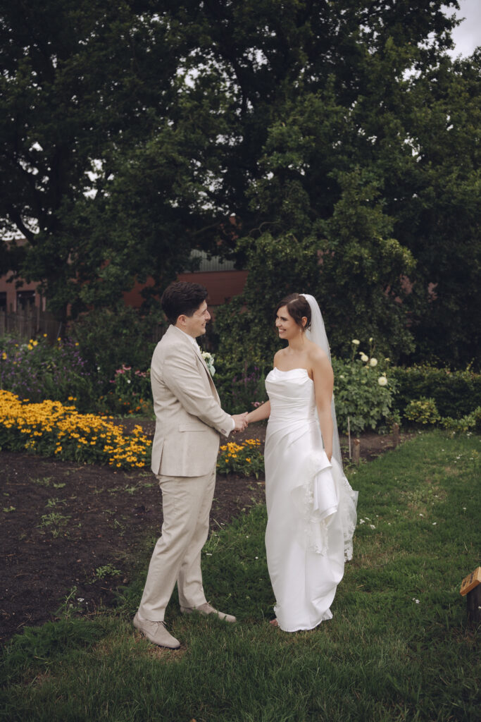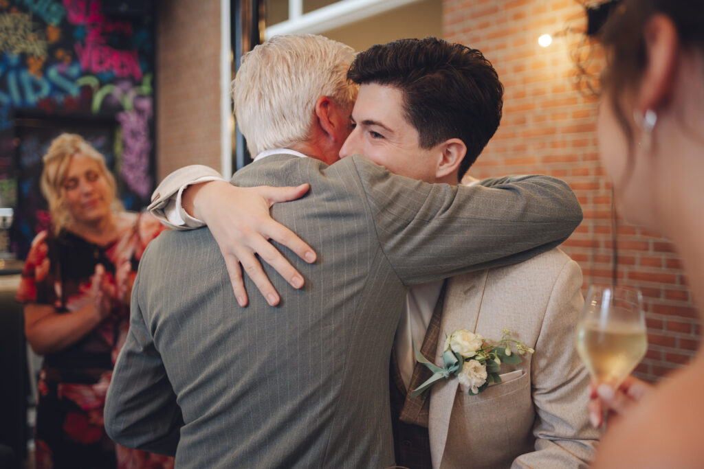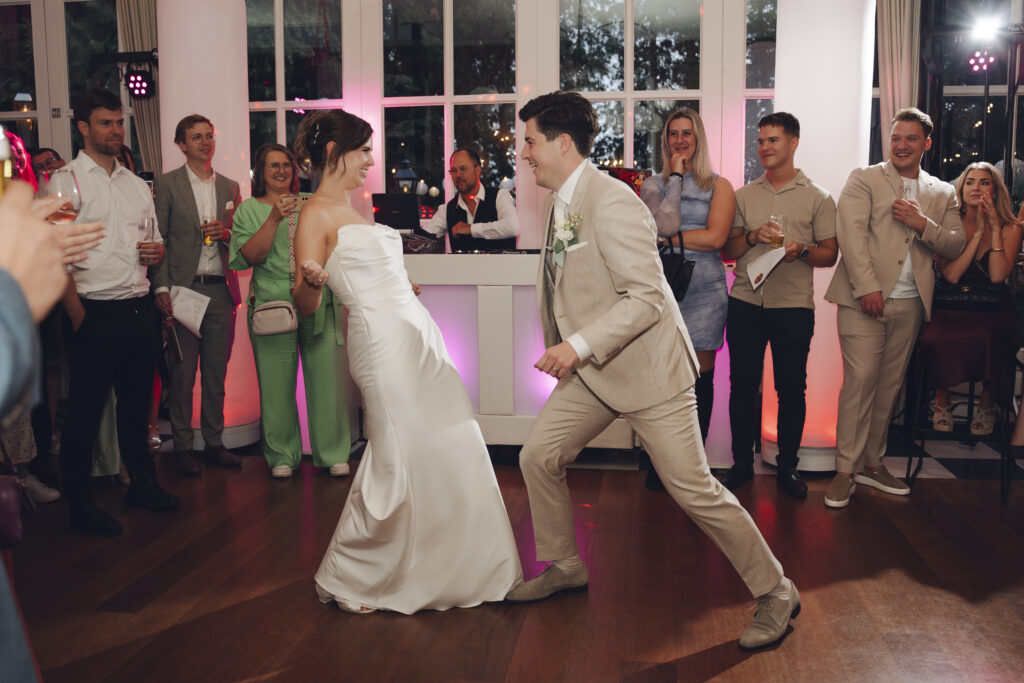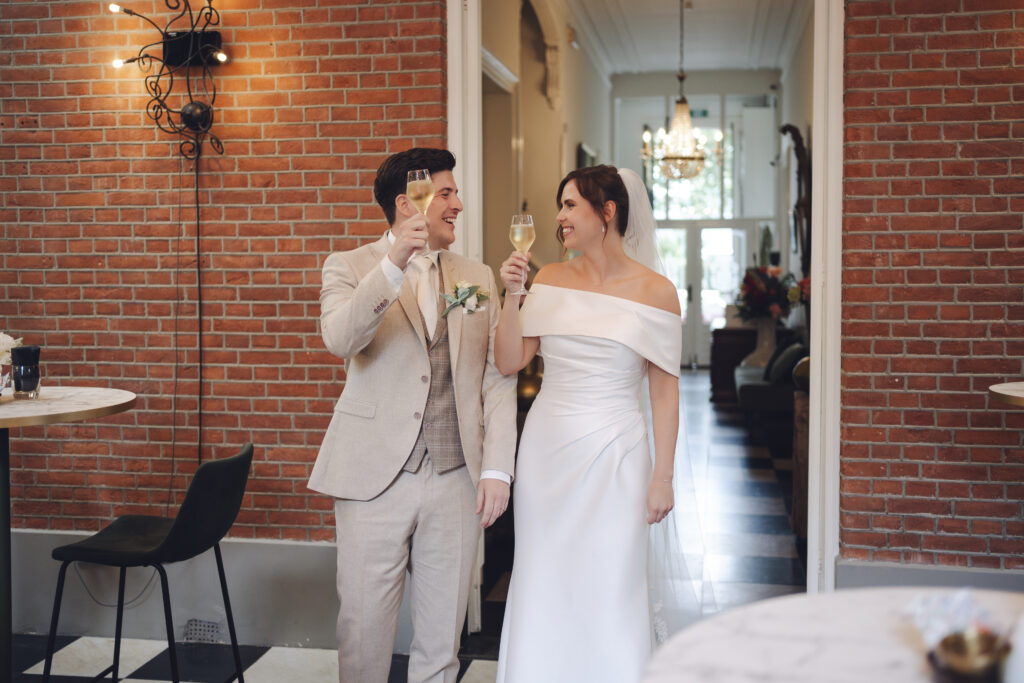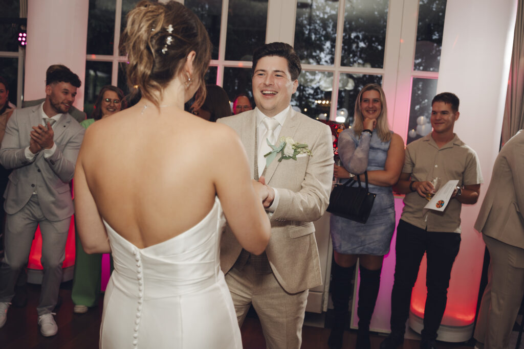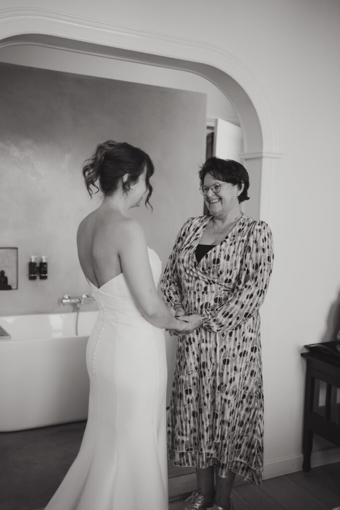 En daarnaast was het ook nog eens een bruiloft met zo veel liefde en een grote glimlach. Dit bruidspaar liet zien dat het weer echt geen rol speelt, als je maar van elkaar houdt. Tijdens de First Look keken zij elkaar aan en begon het ineens super hard te regenen. Lachend rende we naar binnen, dronken we een kopje thee en gingen daarna weer naar buiten om foto’s te maken. Toen was het alweer droog!