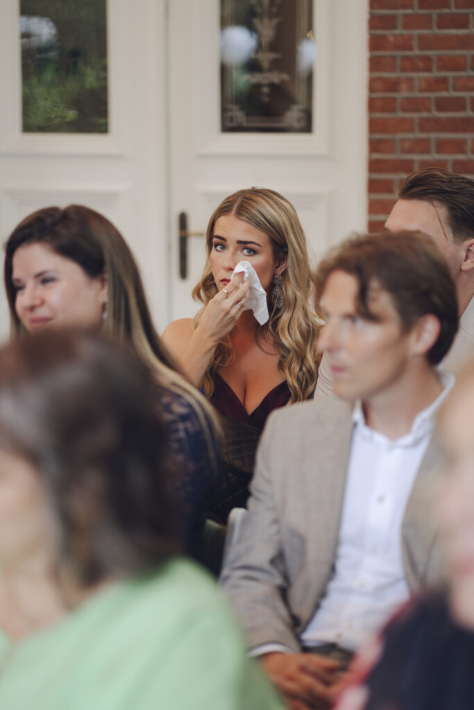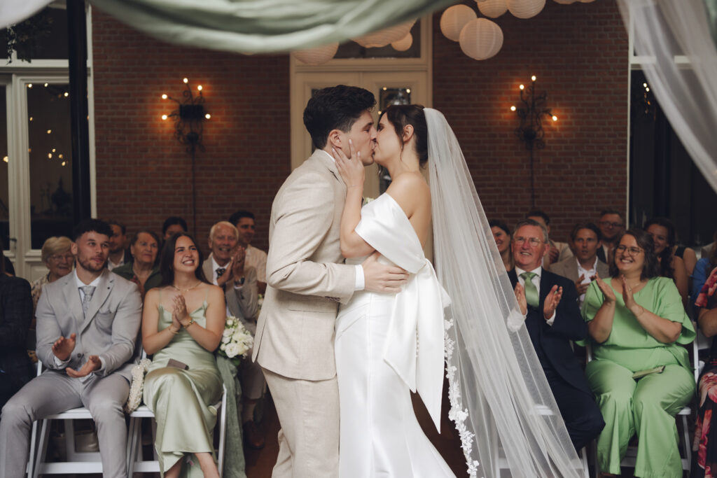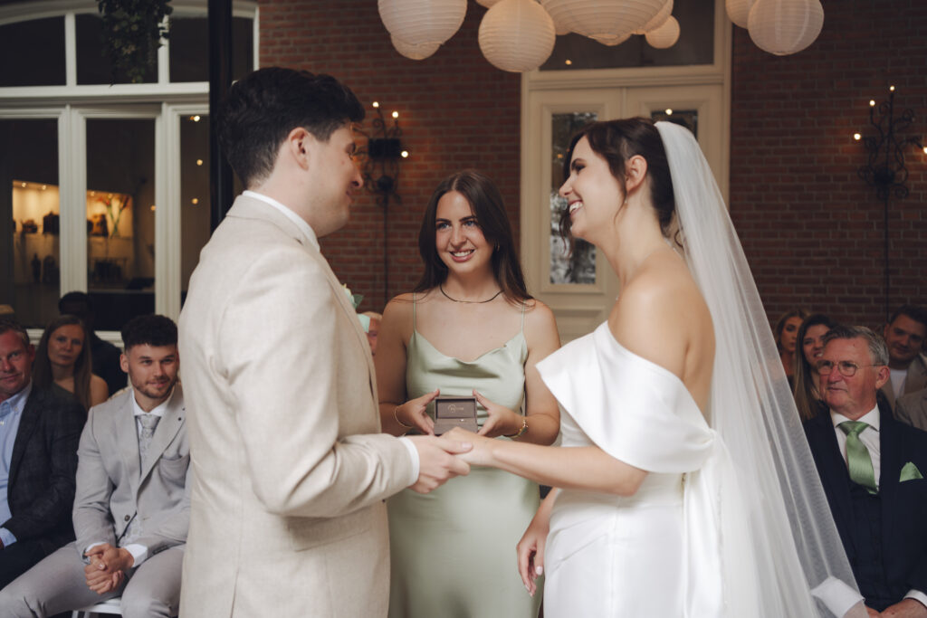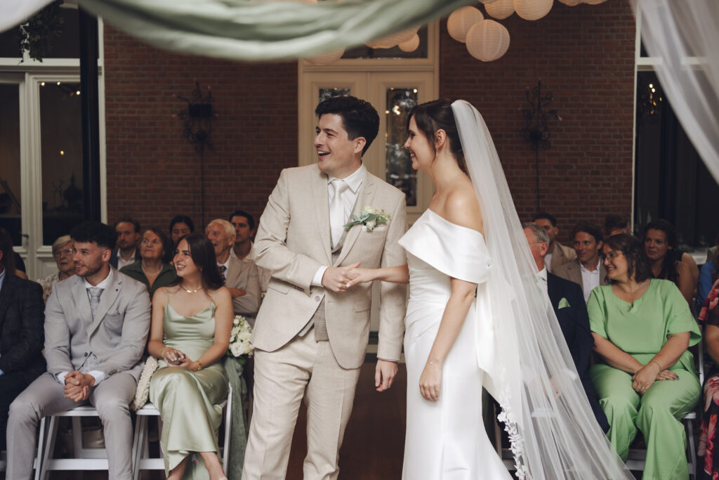 En de ceremonie kon plaatsvinden in de serre met prachtige openslaande deuren. Super fijn om een locatie te hebben met zo een mooie overdekte plek voor de ceremonie.