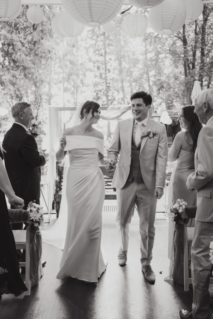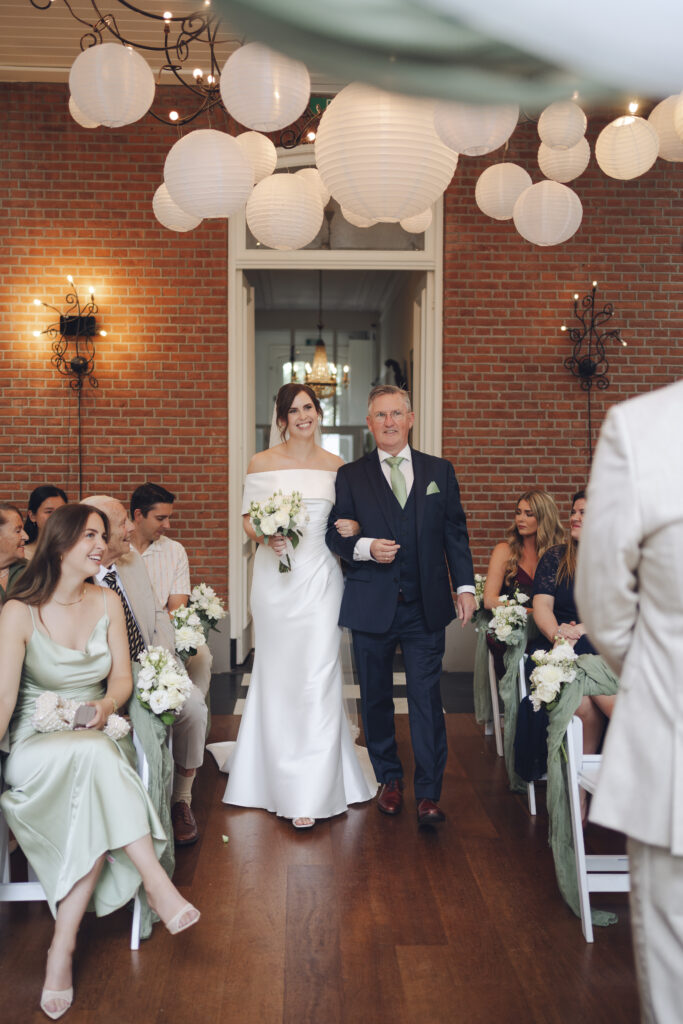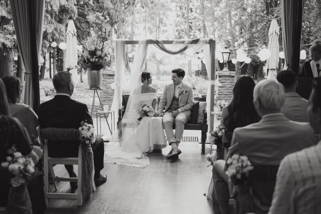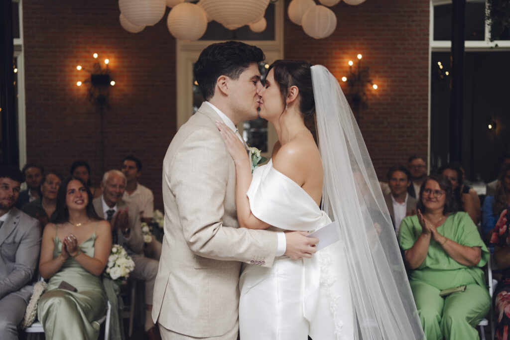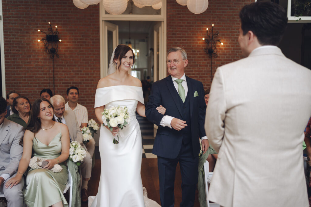 En de ceremonie kon plaatsvinden in de serre met prachtige openslaande deuren. Super fijn om een locatie te hebben met zo een mooie overdekte plek voor de ceremonie.